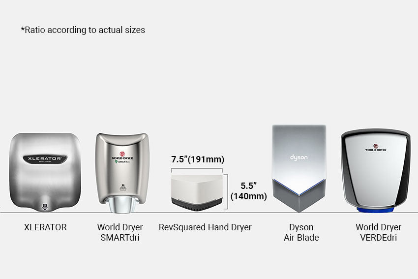 The RevSquared Hand Dryer stands out in the industry for its compact design, setting it apart from other commercial hand dryers. Designed to save space and not compromise efficiency, this hand dryer delivers commercial grade performance for hand drying.